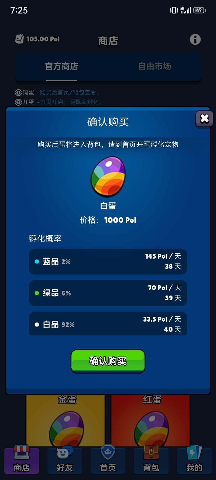 🎁 【注册即送】 1000 POL 创始盲盒宠物,每天铲出25pol 。