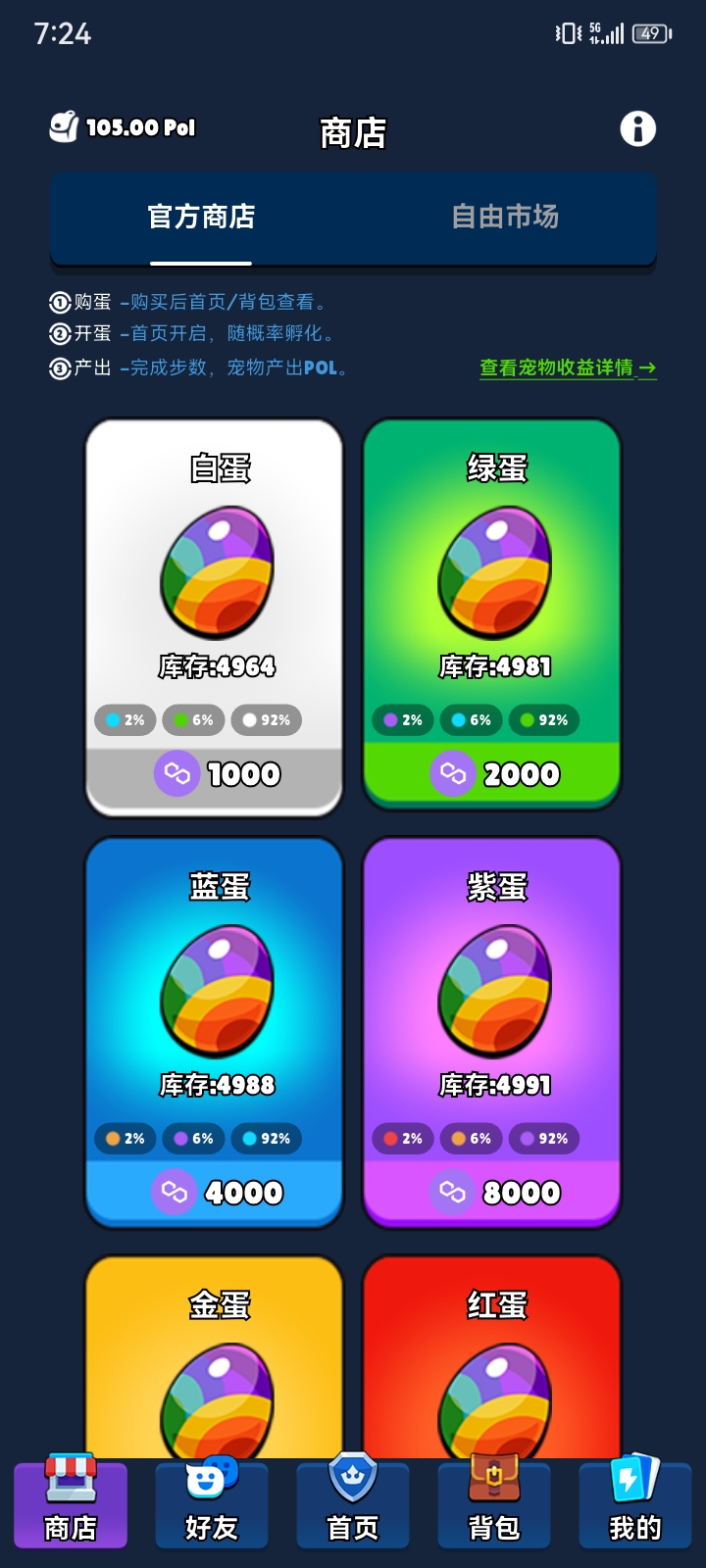 🎁 【注册即送】 1000 POL 创始盲盒宠物,每天铲出25pol 。